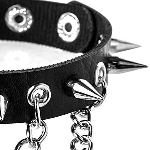 MILAKOO Set bracciali 2 pezzi bracciale in pelle punk rock bracciale rivetto nero regolabile con catene