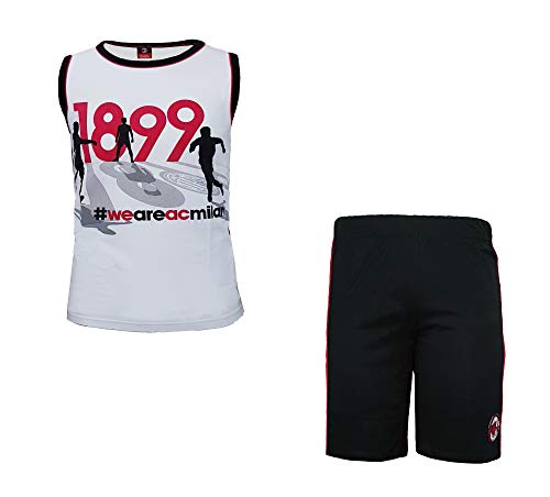 AC Milan Pigiama Ragazzo Spalla Larga in Cotone Prodotto Ufficiale Art. MI15077 (16 Anni, Bianco)