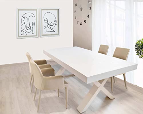 Milani home Tavolo da Pranzo Moderno di Design Allungabile in Legno Bianco Consumato Cm 100x180/230/280 per Interno Sala da Pranzo