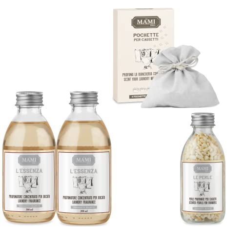 Kit Mami Milano di profumatori per il bucato - 2 Essenze da 200ml + Perle + Pochette - Diamante Bianco