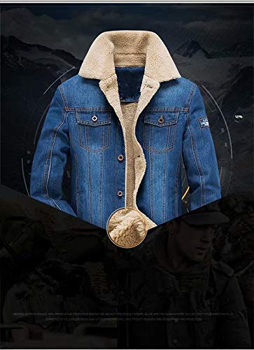 MILASIA Giacca da Uomo Calda Moda Bottoni da Tasca Film Denim Top Cappotti Cappotti Giacca Trapuntata (2XL, Azzurro)