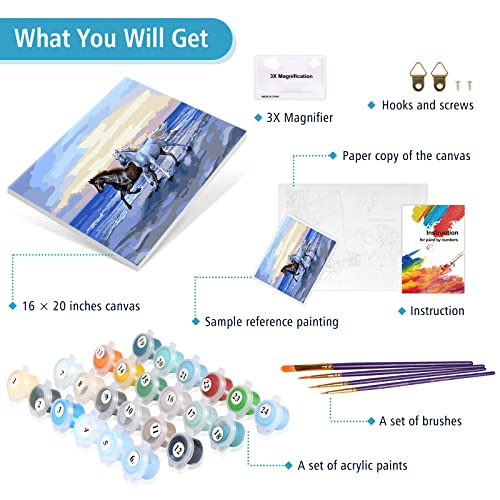MILEADER Dipingere con i Numeri per Adulti con Cornice DIY Dipinto ad Olio su Tela 16 * 20 Pollici con Pennelli e Pigmento Acrilico - Cavalli