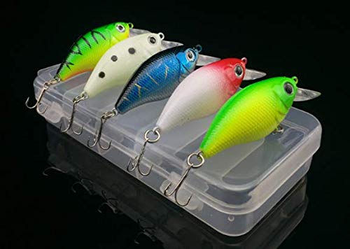 Milepetus - Set di 5 esche da pesca in mare Minnow galleggianti per esche da pesca con gancio per esche rigide, con sfera in acciaio all'interno e lustrino triplo gancio, 7 g/5,5 cm