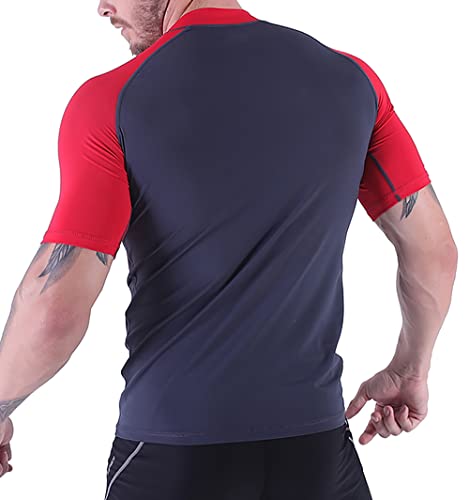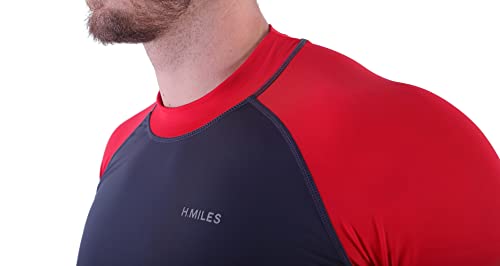 H.Miles Uomo Rash Guard Protezione Solare UV (UPF) 50+ Basic Maniche Corte per Immersioni Snorkeling Surf (4XL, Asphalt/Fuchsia)