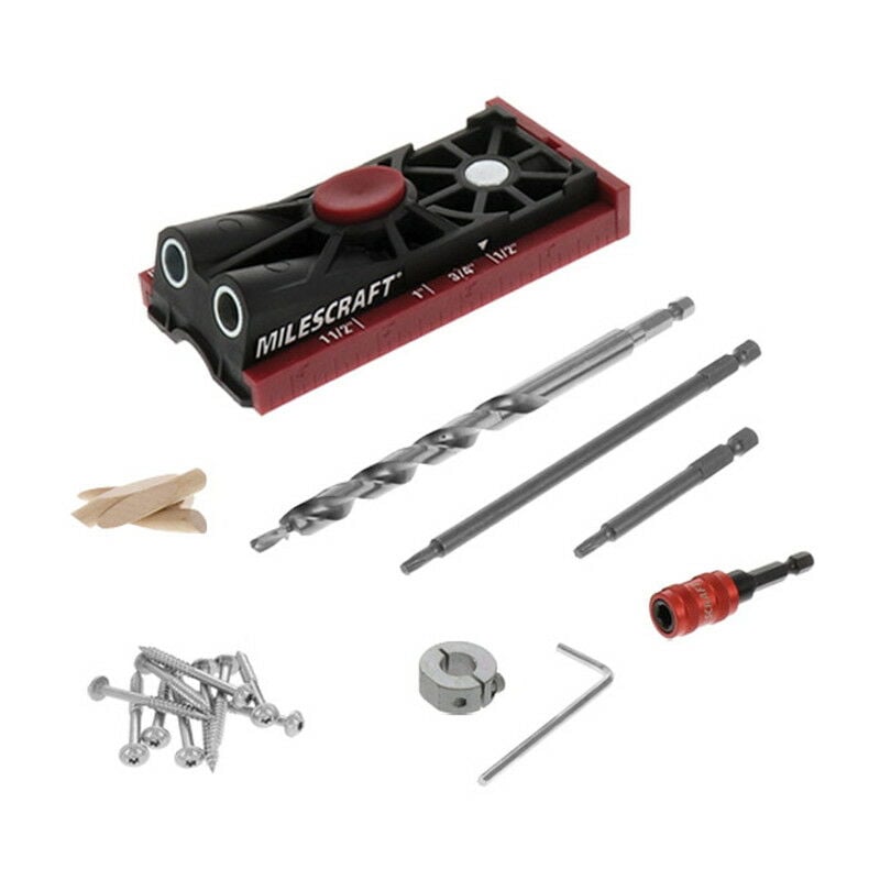 Il PocketJig200 Pocket Hole Jig di Milescraft ti consente di assemblare rapidamente i tuoi pezzi. Sia che tu voglia costruire progetti di archiviazione, armadi, scaffali o librerie, questo kit fa tutto. Permette di realizzare giunti angolari, giunti a T, giunti telaio, giunti obliqui ed effettuare riparazioni. Grazie alle impostazioni integrate per lo spessore delle tavole, non è necessario misurare manualmente. Basta impostare questa maschera tascabile sull'impostazione desiderata, impostare la profondità della punta e iniziare a tagliare. trapano. Vantaggi del prodotto Le scale metriche integrate consentono di misurare facilmente la quantità di spessore del pezzo. Il pocket jig ha quattro impostazioni comuni per lo spessore della tavola: 1/2, 3/4, 1 e 1-1/2. 2 (12, 19, 27, 38 mm). Boccole di perforazione in acciaio temprato per fori delle tasche precisi ed esatti in qualsiasi momento. ogni volta con Milescraft PocketBit Le strette tolleranze tra presa e punta riducono gli strappi e