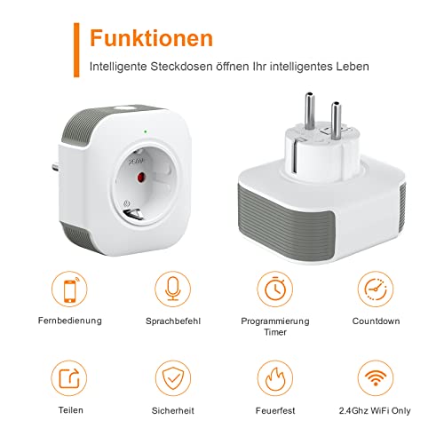 Milfra Presa Wi-Fi 16 A, presa smart Alexa, confezione da 4 pezzi, telecomando WiFi, con timer, compatibile con Google Assistant IFTTT, controllo vocale, accesso remoto, nessun hub necessario