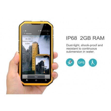 MFOX A6 militare Smartphone - IP68, 5 pollici 1920 x 1080 OGS, MTK6589T Quad Core CPU 1.5GHz, 2GB di RAM, Android4.4 (giallo)
