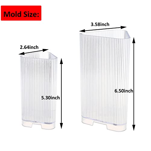 MILIVIXAY 2 stampi per candele a forma di triangolo a righe, per candele a colonna a coste per la creazione di candele, 50 adesivi per stoppini, 1 filo per stoppino e 2 supporti per stoppini.