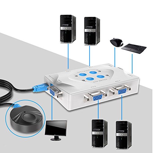 Milkee Switch KVM 4 porte 4 ingressi 1 uscita USB2.0 con controllo di fili Divisione automatica delle scorciatoie tastiera 4 porte