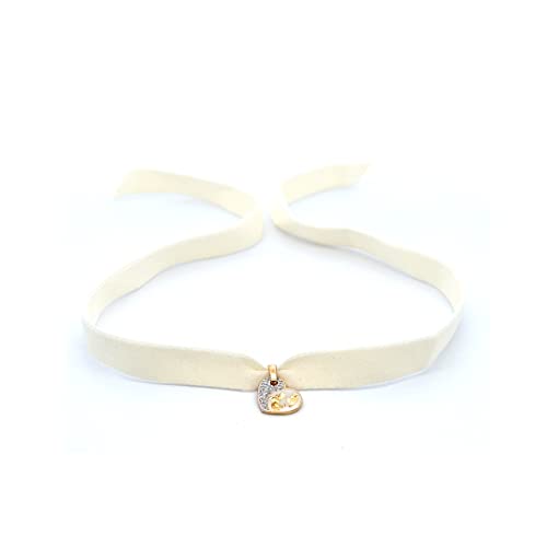 Rue des Mille - Choker Con Cuore - Foglia d'Oro | Choker Donna | Choker tessuto elastico Donna Argento Con Ciondolo Cuore Pendente E Zirconi Bianchi