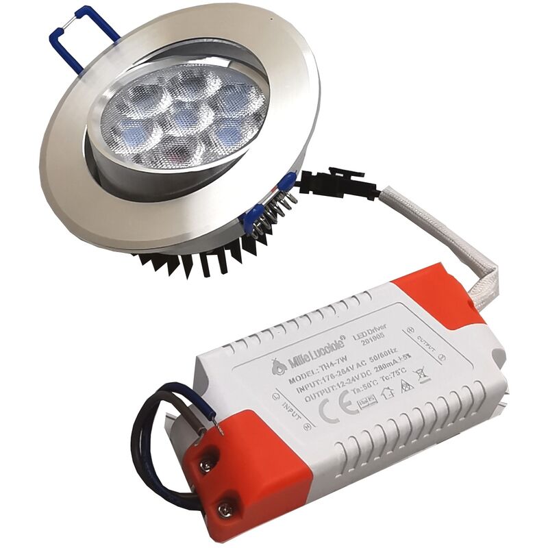 Faretto LED a Basso consumo energetico Si collega direttamente alla rete da 220V Non necessita di alimentatore Prodotto già completo di LED DRIVER Sistema con alette a molla per fissaggio senza viti Indicato per controsoffittature e soppalchi Parte centrale contenentei LED inclinabile e direzionale. . Caratteristiche Watt:7 Lumen: 700 Tensione: ac176-260v Frequenza:50 Hz Assorbimento: 280mA Durata:25.000 h Dimensioni Diametro totale: 85 mm Diametro foro: 75 mm Spessore: 5 cm pezzi collo: 60. .