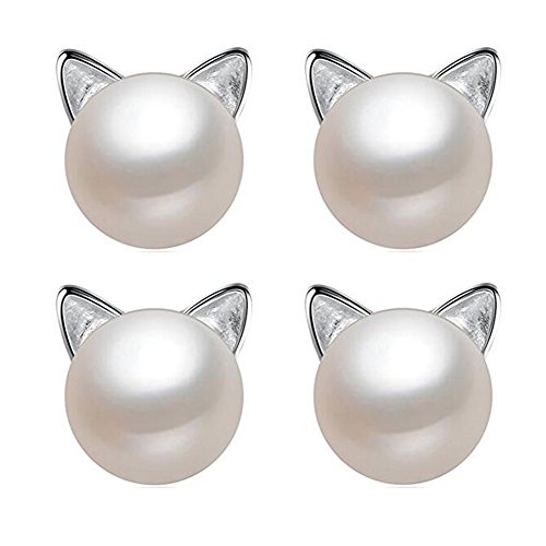 Millechic - Orecchini da donna, con Perle e Orecchie di gatto, in Argento Sterling 925, Diametro 6,5-7,0 mm, ipoallergenici e Argento 925/1000, colore: Argent 2 Paires, cod. 01-01-ZZED