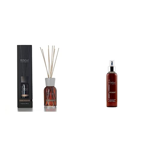 Millefiori Milano diffusore di fragranza per ambienti, Sandalo Bergamotto 250 ml di fragranza & Milano spray profumato per ambiente 150ml, fragranza Sandalo Bergamotto