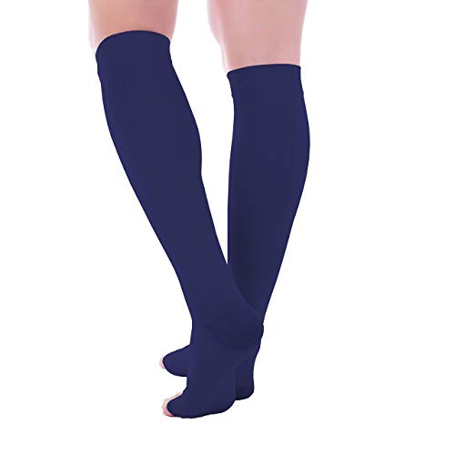 Doc Miller Vitello Compressione Manica 1 Coppia 20-30 mmHg Forte Vitello Supporto Colori alla Moda di Pressione Graduata per Sport Esecuzione di Recupero Stecche Shin vene varicose X-Large Blu Scuro