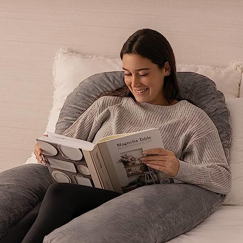 Milliard Cuscino per gravidanza, cuscino premaman per tutto il corpo, in memory foam, comfort per dormire, sollevare le gambe, sostenere schiena e pancia, lato, fronte e pancia, fodera grigia