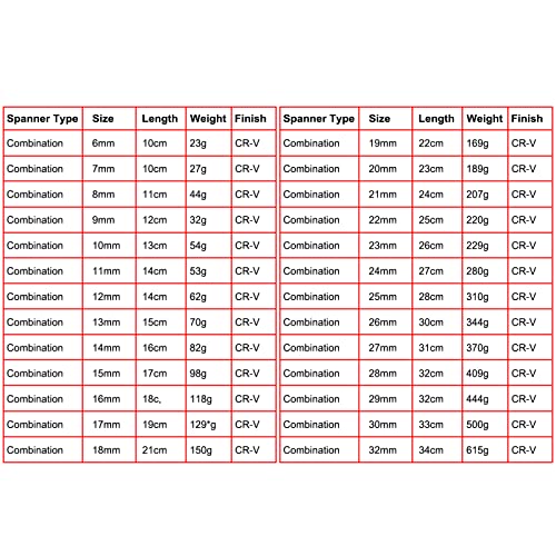 Ogni selezione include un solo tipo di chiave inglese, da acquistare secondo necessità