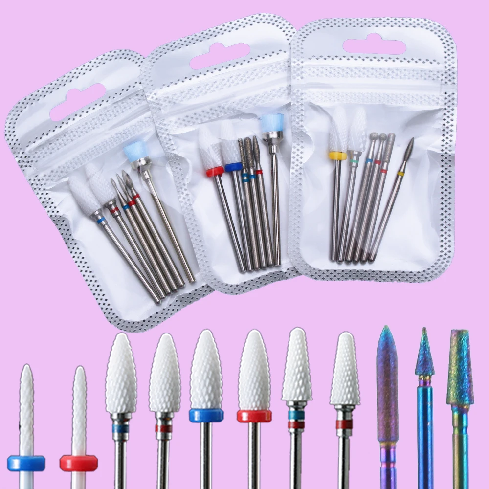 6PCS Milling Cutter for Manicure Diamond Ceramic Nail Drill Bits Mills Removing Nail Bit Set Gel Electric Manicure Machine Tools