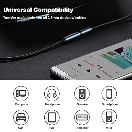 Il cavo AUX da femmina a femmina da 3,5 mm è compatibile con tutti i dispositivi digitali con jack AUX standard da 3,5 mm e porta AUX-in, come cuffie, autoradio, o sistema audio stereo HiFi domestico. (Si prega di notare che i dispositivi per cui si utilizza dovrebbero avere anche un jack TRS stereo. Trasferire l'audio tra dispositivi, nessun microfono.)