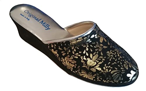 Milly 8000 Ciabatte da Camera per Donna Pantofole con Zeppa 5 cm Classiche Eleganti con Ricamo, Made in Italy (Stampa Oro, numeric_35)