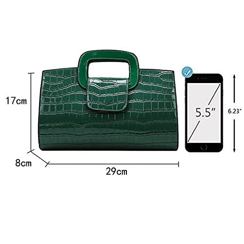 Millya UK Donne Pelle di Coccodrillo Sera Frizione Borsa Lucida In Metallo Verniciato Maniglia Borse Elegance Borsa a Tracolla, 5843 + verde (bb-04632C)