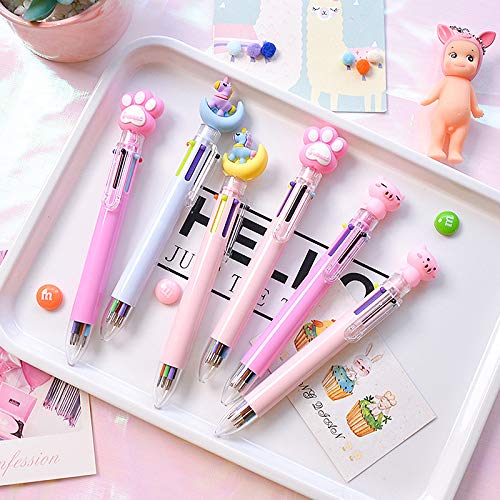 Millya 4 Pack 0.5mm 6 in 1 Retractable Ballpoint Pens Unicorn Pattern Sign Pen Office School Supplies,Color Ramdomly