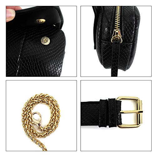 Millya Women PU Leather Python Waist Bag Snakeskin Fanny Pack Square Chain Shoulder Bag