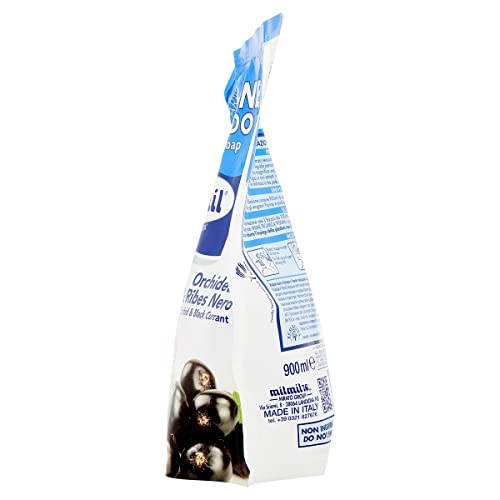 Milmil Sapone Liquido Eco Chic, Fragranza Orchidea & Ribes Nero, Formato Ricarica Busta, Sapone Mani, Viso e Corpo, Dermatologicamente Testato - 900 ML
