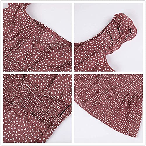 MILONT Abiti Estivi per Le Donne Ruffle Manica Corta Scollo a Cuore Stampa Abito Corto Mini Abito Prendisole, B11 Rosa, XL