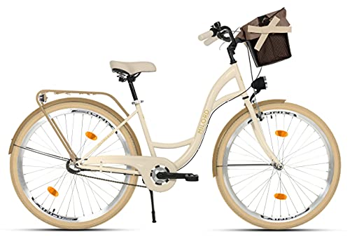 Milord Bikes - Bicicletta da donna, 26 pollici, 3 marce, comoda, con cestino,stile olandese, Citybike, retrò, vintage, colore crema e marrone