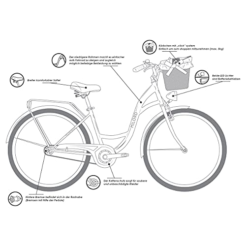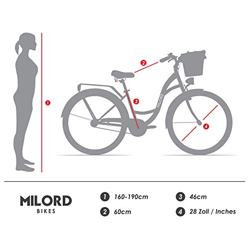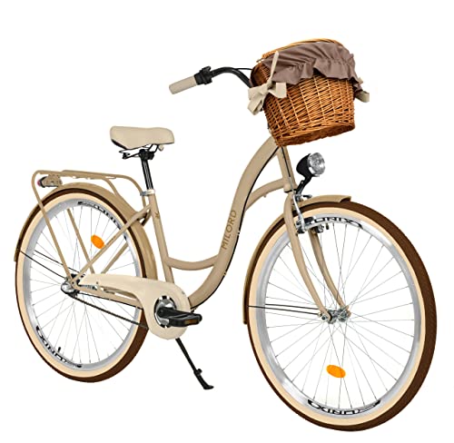 Milord Comfort - Bicicletta da donna con cestino in vimini, stile olandese, stile retrò, vintage, 28 pollici, marrone crema, cambio Shimano a 3 marce