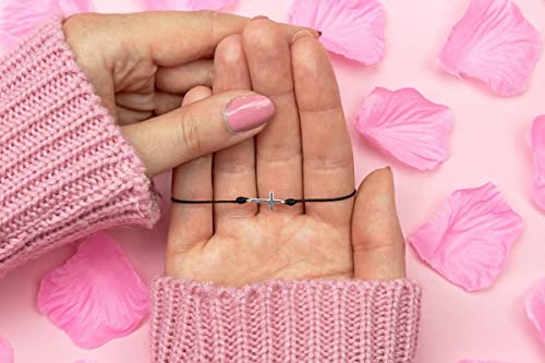 Milosa Bracciale da donna con croce in argento Sterling 925, corda di nylon, misura regolabile, regalo per donne o ragazze, 18 cm, Tessuto