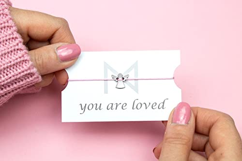 Milosa SchmuckDesigns - Bracciale con angelo custode, colore rosa, per ragazze (regolabile), con grazioso portafortuna di colore argento