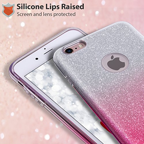 MILPROX Cover iPhone 6 Plus, iPhone 6s Plus glitter shiny bling Slim Crystal Clear TPU Bling Glitter Paper Frosted PC Shell protettiva Custodia per iPhone 6 Plus/6s Plus - Rosa Gradiente