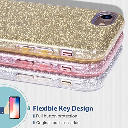 MILPROX Cover iPhone 8, iPhone 7 Glitter Shiny Bling Slim Crystal Clear TPU Bling Glitter Paper Frosted PC Shell Protettiva Custodia per iPhone 7/8 - Oro