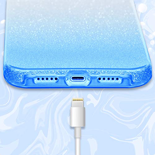 MILPROX Cover iPhone 12 And iPhone 12 PRO Glitter Shiny Bling Slim Crystal Clear TPU Bling Glitter Paper Frosted PC Shell Protettiva Custodia per iPhone 12 /iPhone 12 PRO 6.1 Blu Gradiente