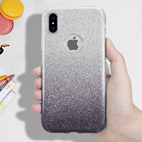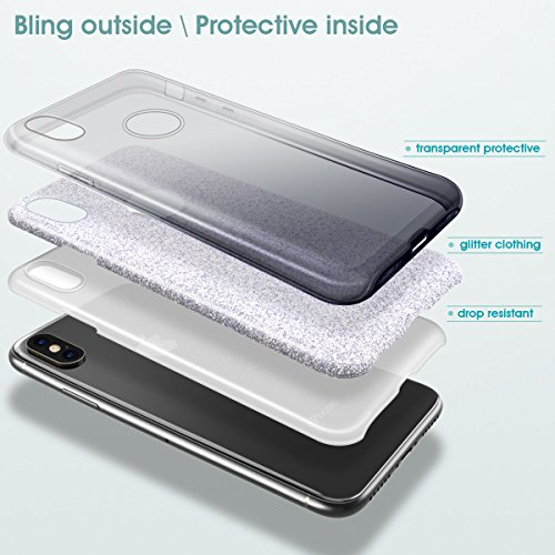 MILPROX Cover iPhone Xs,iPhone X glitter shiny bling Slim Crystal Clear TPU Bling Glitter Paper Frosted PC Shell protettiva Custodia per iPhone X/Xs - Nero Gradiente
