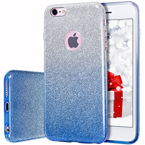 MILPROX Cover iPhone 6, iPhone 6s glitter shiny bling Slim Crystal Clear TPU Bling Glitter Paper Frosted PC Shell protettiva Custodia per iPhone 6/6s -Blu Gradiente