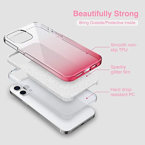 MILPROX Cover iPhone 12 And iPhone 12 PRO Glitter Shiny Bling Slim Crystal Clear TPU Bling Glitter Paper Frosted PC Shell Protettiva Custodia per iPhone 12 /iPhone 12 PRO 6.1 Rosa Gradiente