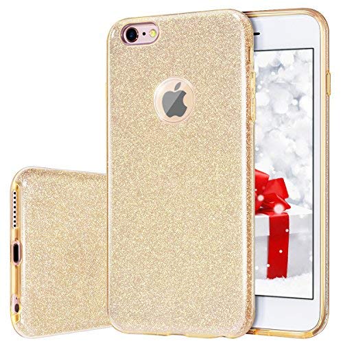 MILPROX Cover iPhone 6 Plus, iPhone 6s Plus glitter shiny bling Slim Crystal Clear TPU Bling Glitter Paper Frosted PC Shell protettiva Custodia per iPhone 6 Plus/6s Plus - Oro