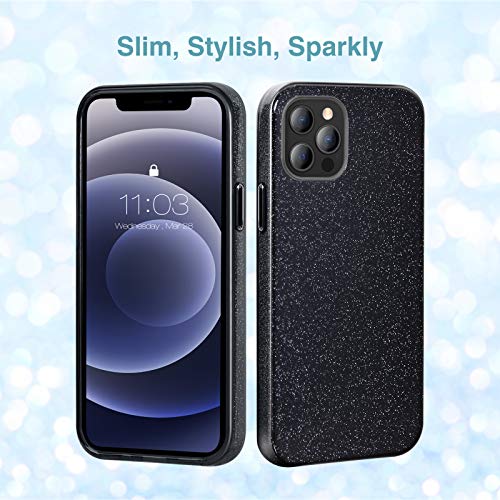 MILPROX Cover iPhone 12 PRO Max Glitter Shiny Bling Slim Crystal Clear TPU Bling Glitter Paper Frosted PC Shell Protettiva Custodia per iPhone 11 PRO Max 6.7 Nero
