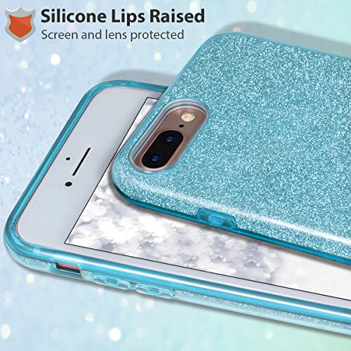 MILPROX Cover iPhone 8 Plus, iPhone 7 Plus Glitter Shiny Bling Slim Crystal Clear TPU Bling Glitter Paper Frosted PC Shell Protettiva Custodia per iPhone 7 Plus/8 Plus - Blu