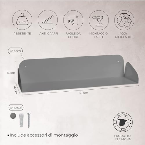 MILUKA Libreria da Parete Sospesa | Set 2 Mensole da Muro Design 60 cm | Libreria Scaffale | Mensole Libri Invisibili, Mensole Camaretta Bambina, Scaffale Cucina, Decorazioni Casa (Grigrio, 2 Pezzi)"