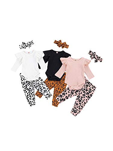 Milumilu Completini Neonata Leopardato Floreale 0-24 Mesi Pagliaccetto a Manica Lunga + Pantaloni + Fascia 3 Pezzi Tutina in Cotone Carino e Elegante Completo Bimba (Bianco, 6-12 Mesi)