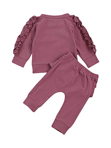 Milumilu Completo Neonata Elegante 0-24 Mesi 2 Pezzi Maglietta a Maniche Lunghe con Volant + Pantalone Tuta Bimba in Tinta Unita Bordeaux Regalo Primavera (Viola, 18-24 Mesi)