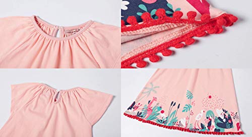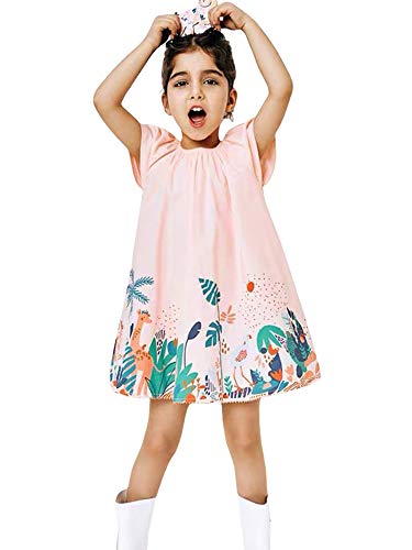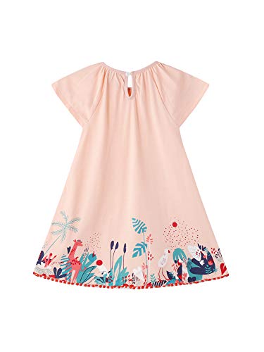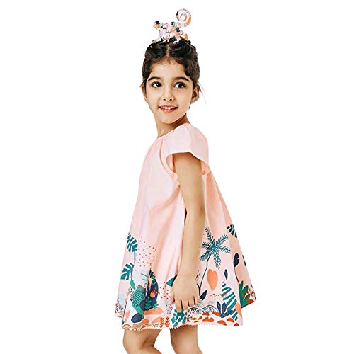 Milumilu Vestito Bambina Maniche Corte Elegante 2-8 Anni Cotone 100% Abito da Principessa con Stampa Cartoon Girocollo Bambina Carina Estate (Rosa, 4 Anni)