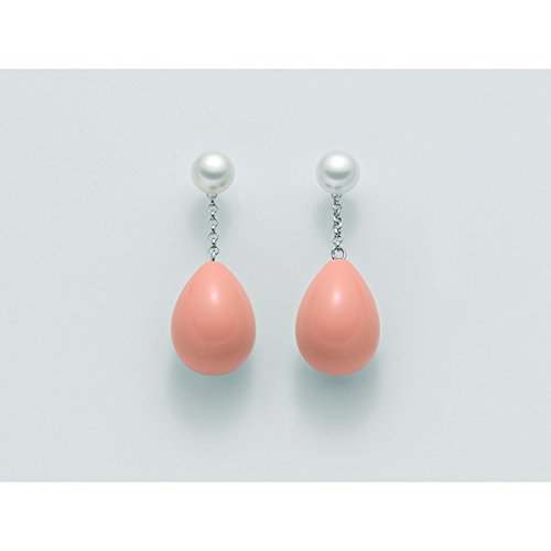 Miluna Orecchini in Argento 925 con Corallo rosa a goccia e perla