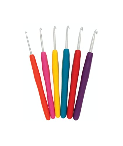 MILWARDS Set di uncinetti: Impugnatura Morbida in Gomma: Set di 6, Alluminio, Arcobaleno, 2.5,3,3.5,4,4.5,5 mm