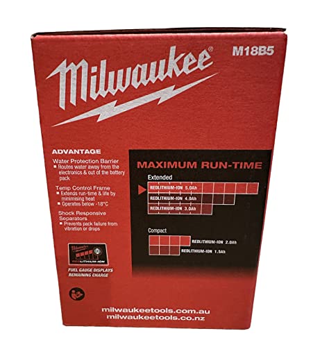 Milwaukee Batteria M18B5 5.0Ah Rossa e Nera Ioni di Litio