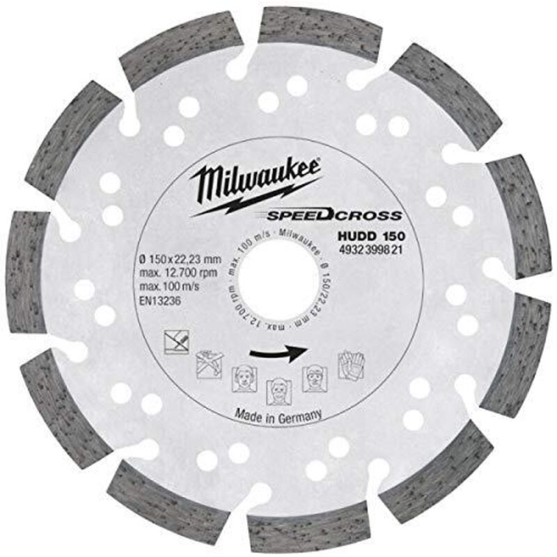 Dettagli: Lama universale per diversi materiali. Classificata in due categorie per la massima durata. Segmenti da 10 mm per garantire lunga durata e resistenza. Segmenti saldati al laser. Basse vibrazioni. Prestazioni: i dischi diamantati Speedcross sono dischi universali, ma le loro prestazioni sono adattate ai materiali da lavorare. I dischi HUDD sono ottimizzati per materiali molto duri. Più dura è la superficie, migliori sono le prestazioni. Caratteristiche: Diametro: Ø 150 mm Foro: 22,23 mm Spessore di taglio: 2,6 mm