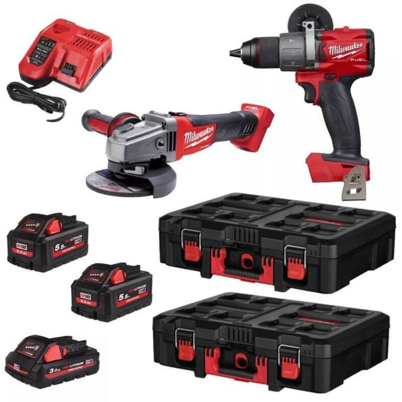 M18 fpp2d2-553p - kit trapano avvitatore + smerigliatrice angolare + 2 valigette packout - 3 batterie da 5.5ah - milwaukee